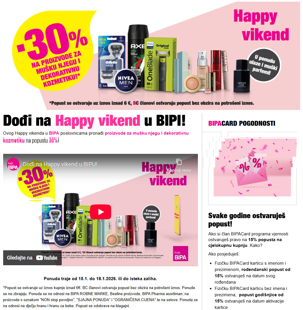 OpširnijeNovi Happy vikend od 30.05.-02.06.2024. u BIPA...